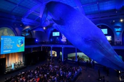 Ảnh chụp của Liên Hiệp Quốc/Mark Garten - Biểu tượng cá voi xanh xuất hiện trên Sảnh Sự sống Đại dương Milstein tại Viện Bảo tàng Lịch sử Tự nhiên Hoa Kỳ.