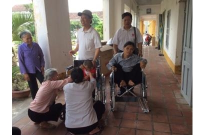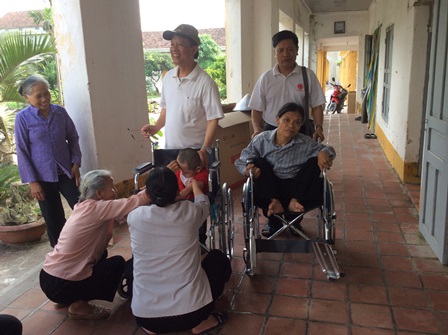 Trong đợt làm bác ái này, ban Bác Ái Xã Hội giáo phận đã tặng 50 chiếc xe lăn cho những người đau yếu, bệnh tật không phân biệt lương dân hay Công giáo.