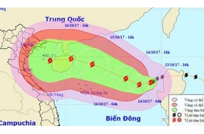 Trong bản tin bão phát lúc 17h, Trung tâm Dự báo khí tượng thủy văn trung ương cho biết chiều 13-10 tâm bão cách quần đảo Hoàng Sa khoảng 720km về phía đông đông bắc. Sức gió mạnh nhất ở vùng gần tâm bão mạnh cấp 8 (60-75km/h), giật cấp 10.