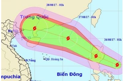 Đến 4h ngày 27/8, vị trí tâm bão ở vào cách bán đảo Lôi Châu (Trung Quốc) khoảng 600 km về phía đông đông nam, sức gió tăng 2 cấp.