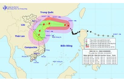 Sáng 15-10, Trung tâm dự báo khí tượng thủy văn trung ương cho biết lúc 7h ngày 15-10, vị trí tâm bão số 11 ở vào khoảng 20,0 độ vĩ Bắc, 114,8 độ kinh Đông, cách đảo Hải Nam (Trung Quốc) khoảng 420km về phía Đông. Sức gió mạnh nhất ở vùng gần tâm bão mạnh cấp 12-13 (115-150km/giờ), giật cấp 16.