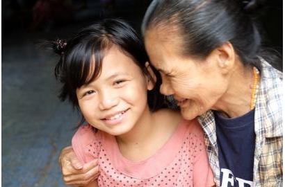 | Một cô bé tị nạn 12 tuổi không nơi nương tựa từ Myanmar (trái) ở trại tị nạn Mae Ra Ma Luang, Thái Lan với một nhân viên Caritas (phải). Ảnh: Nicholson/Caritas |