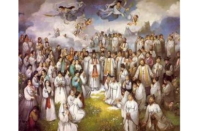 Thánh Gioan viết: “Một trong các kỳ mục lên tiếng hỏi tôi: những người mặc áo trắng kia là ai vậy? Họ từ đâu tới? Tôi trả lời: thưa Ngài, Ngài biết đó. Vị ấy bảo tôi: Họ là những người đã đến, sau khi trải qua cơn thử thách lớn lao” (Kh7,13).Thánh Tông đồ đã nhìn thấy họ trên Thiên đàng, tràn đầy hân hoan, ca hát chúc tụng Thiên Chúa : “Họ đã giặt sạch và tẩy trắng áo mình trong máu Con Chiên” (Kh 7,14). Quả thực, việc thanh tẩy tội lỗi chỉ thành tựu nhờ máu Chúa Kitô, Đấng Cứu Thế. Tuy nhiên, các Thánh đã phải trải qua cuộc gian truân lớn. Vì tình yêu Đức Kitô, tất cả đã phải giao chiến với quyền lực của sự dữ, với muôn nghìn đau khổ và khó nhọc. Nhưng thánh Gioan cũng giới thiệu phần thưởng lớn lao của các Ngài : “Họ đêm ngày thờ phượng trong đền thờ của Thiên Chúa… Họ sẽ không còn phải đói, phải khát, không còn bị ánh nắng mặt trời thiêu đốt và khí nóng hành hạ nữa. Vì Con Chiên đang ngự ở giữa ngai sẽ chăn dắt và dẫn đưa họ tới nguồn nước trường sinh” (Kh 7,15-17).