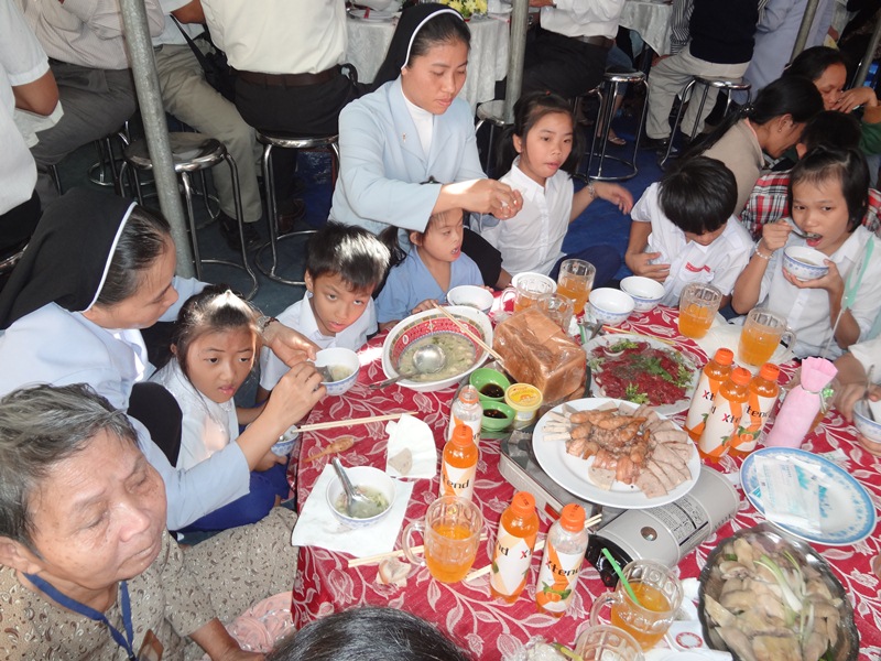 Các Nữ tu, quý Ân nhân, ca đoàn Emmau Giáo xứ Thạch Đà Sài gòn, nhóm thiện nguyện Phanxicô Xaviê đã giúp cộng đoàn người kém may mắn đón nhận niềm vui Giáng Sinh với bữa tiệc thịnh soạn và quà tặng Noel.