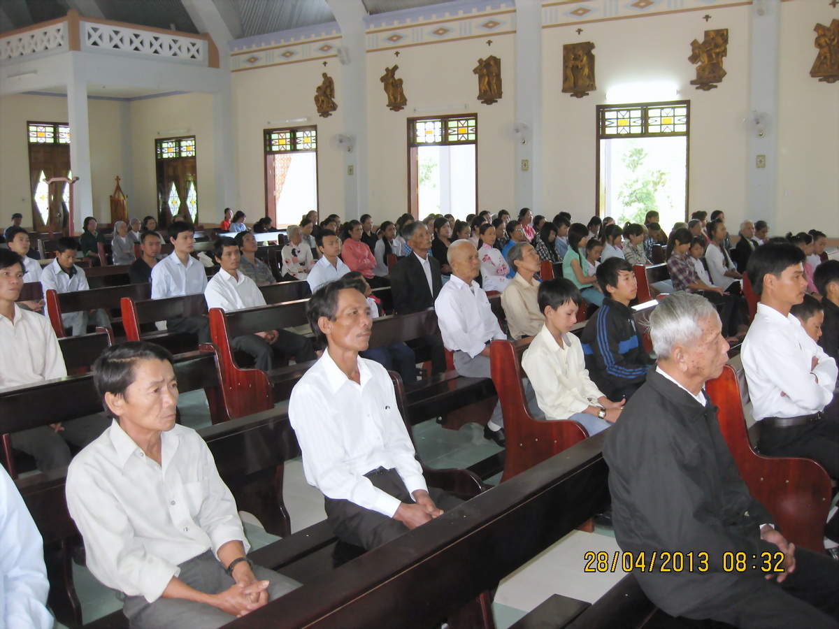 Nhóm Bảo vệ Sự sống thuộc Caritas Tổng Giáo phận Huế chia sẻ những thông tin liên quan đến việc bảo vệ sự sống với hơn 100 gia trưởng và thanh niên ở giáo xứ Sơn Thủy vào sáng Chúa nhật, ngày 28/4/2013. Đồng hành, có linh mục Phêrô Trần Văn Quý, Giám đốc Caritas Tổng Giáo phận Huế và các nữ tu Dòng Phaolô Huế.