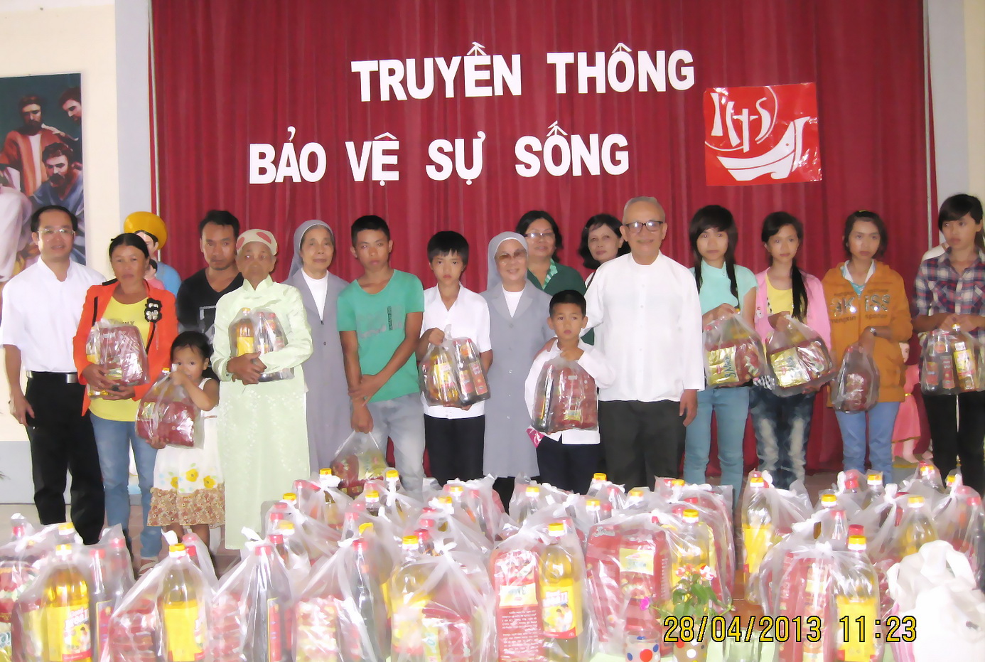 Cuối buổi sinh hoạt, Linh mục Giám đốc Caritas, Linh mục quản xứ, các Nữ tu Dòng Phaolô, anh chị em trong Nhóm Bảo vệ Sự sống chuyển đến mỗi gia đình trong giáo xứ gói quà, của các vị hảo tâm tại Huế, thể hiện tình cảm quý mến, sự thông cảm với cộng đoàn còn nhiều khó khăn này.