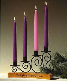 Có 4 cây nến thắp lên trong thời gian của Mùa Vọng. Mỗi cây nến tượng trưng cho một ngàn năm suốt đọc dài lịch sử đợi chờ Đấng Cứu Thế.Bốn Cây Nến Mùa Vọng loan báo sứ mạng của Chúa Giêsu xuống trần gian làm người ở giữa với loài người và cho con người. Cây nến màu tím đầu tiên được thắp sáng lên vào ngày Chúa Nhật I Mùa Vọng. Màu tím tượng trưng cho thời gian chuẩn bị, ăn năn hối cải, tỉnh thức. Cây nến thứ nhất chiếu ánh sáng Hoà bình cho những tâm hồn có lòng khoan dung nhân ái.