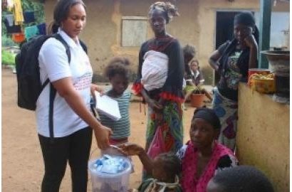 | Các nhóm Caritas tiếp tục đi đến các làng và mang xà phòng, chất tẩy trắng, xô và áp phích để dạy mọi người biết cách Ebola lan truyền. |