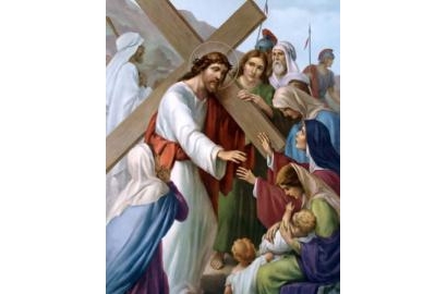 Con đường dẫn tới đồi Golgotha đông nghẹt người: nào là những kẻ tò mò và những kẻ thù ghét. Nhưng cũng có những tâm hồn chân thành, những người đã chịu ơn Chúa, đặc biệt những người phụ nữ, có lẽ là các thành viên của một hội đoàn chuyên an ủi và thương tiếc những người hấp hối và những tử tội.
