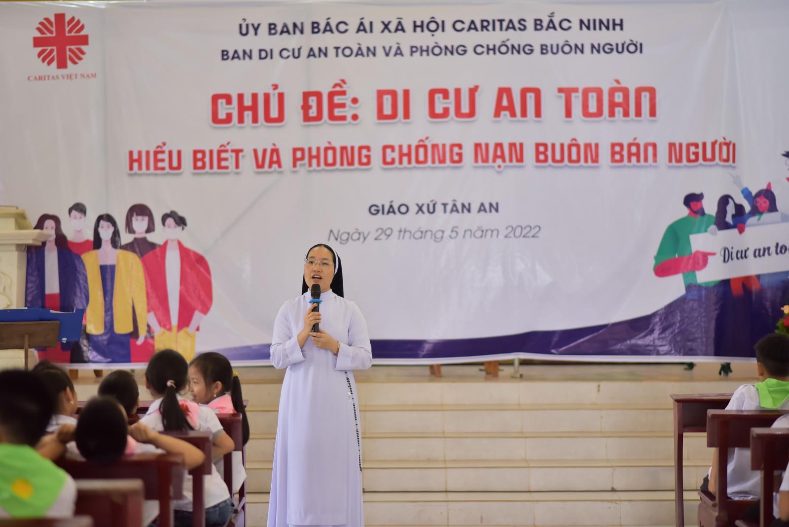 Sau thánh lễ, ban di cư an toàn và phòng chống buôn bán người, đã tổ chức buổi truyền thông với chủ đề: “Di cư an toàn: hiểu biết và phòng chống nạn buôn bán người”. Với mong muốn giúp cho các bậc phụ huynh và các em thiếu nhi có thêm sự hiểu biết và cách thức phòng chống tệ nạn buôn bán người. Bởi giáo xứ Tân An thuộc Thôn Tân An, Xã An Thượng, Huyện Yên Thế, Tỉnh Bắc Giang, một trong số các tỉnh thường xuyên xảy ra những vấn đề về nạn buôn bán người.
