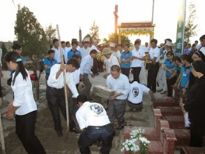 Sau nghi thức tiễn biệt của Cha Giuse Lê Thành Tâm – chánh xứ Ngưỡng Nhân tại sân cuối Nhà thờ Giáo xứ, các em được Cha Giuse Trần Hưng Đạo – Giám đốc Caritas Bùi Chu, Cha Giuse Lê Thành Tâm – chánh xứ Ngưỡng Nhân và đông đảo quý tu sĩ nam nữ, quý thành viên BVSS, quý khách và các đoàn hội trong Giáo xứ Ngưỡng Nhân tiễn đưa các em ra nơi an nghỉ tại lăng thai nhi Ngưỡng Nhân trong khuôn viên thánh địa của Giáo xứ.