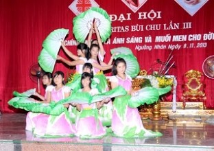 Vũ điệu “Sao Chúa lại gọi con” của nhóm BVSS Quần Cống, lời chúc mừng của Cha Phanxicô Xavie Nguyễn Kim Phùng – đặc trách BVSS Tổng Giáo Phận Hà Nội, Cha Giuse Lê Thành Tâm – Chánh xứ Ngưỡng Nhân, lẵng hoa chúc mừng của các đơn vị và Vũ điệu văn nghệ “Tình ca sự sống” của nhóm BVSS Phú Ninh tăng thêm sự phấn khởi cho Đại Hội.