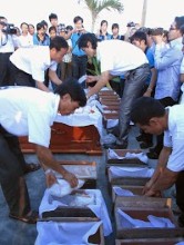 16g00 không khí Đại Hội trầm lắng xuống với nghi thức tiễn biệt, an táng 843 thai nhi. Mọi người đang đồng cảm, xót thương cho số phận của các em, âm thầm lắng đọng tâm hồn để dâng cho các em những lời cầu nguyện chân thành.