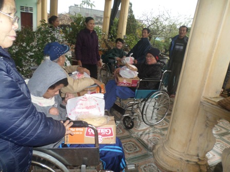 Ngày thứ hai, đoàn tới thăm, chúc tết và tặng quà cho những người nghèo, mồ côi và khuyết tật những xứ thuộc huyện Nghĩa Hưng. Mặc dù rất bận bịu với công việc cuối năm nhưng các thiện nguyện viên vẫn vui vẻ, hăng say nhiệt tình cộng tác với Caritas Giáo phận để đem đến cho những mảnh đời bất hạnh một cái tết trọn vẹn và ý nghĩa.