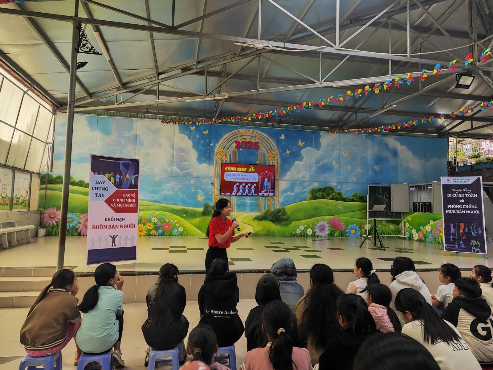 Trong những ngày qua, Caritas Đà Lạt đã thực hiện truyền thông phòng chống nạn buôn người tại Giáo xứ Đạ Tông (khoảng 250 em tham dự) và tại Nhà thờ Mai Anh - Đà Lạt (khoảng 70 em nhỏ).