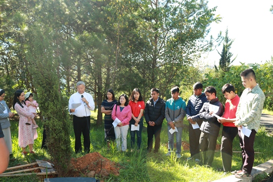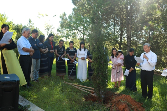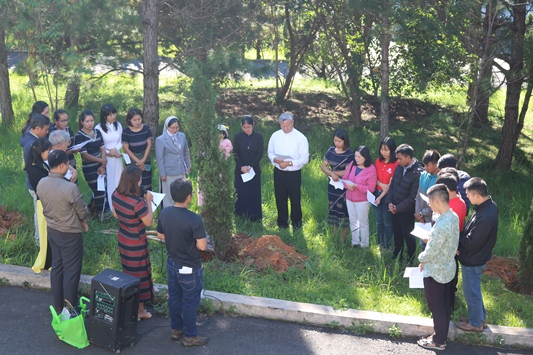 Việc trồng cây mang thêm ý nghĩa, cha Tổng Đại diện - Giám đốc Caritas Đà Lạt đã dâng những lời cầu nguyện đơn sơ, chân thành và khẩn thiết đã khơi dậy nơi lòng những người tham dự tinh thần sám hối trong lối sống để góp phần bảo vệ ngôi nhà chung, sau mỗi lời cầu cộng đoàn đáp: Xin soi sáng trái tim của chúng con và ở lại cùng thế giới của Ngài.