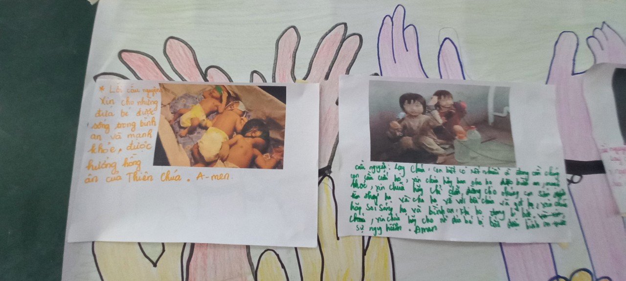 Ở cuối buổi, các em cùng quy tụ theo nhóm để cầu nguyện cho các nạn nhân, mỗi nạn nhân đều có một câu chuyện, một nỗi đau riêng, thông qua những hình ảnh nhận được từ ban tổ chức, các em có thể có cái nhìn trực quan hơn và đồng cảm sâu sắc hơn với các nạn nhân, đặc biệt là với những nạn nhân đồng trang lứa hoặc thậm chí còn nhỏ tuổi hơn các em!