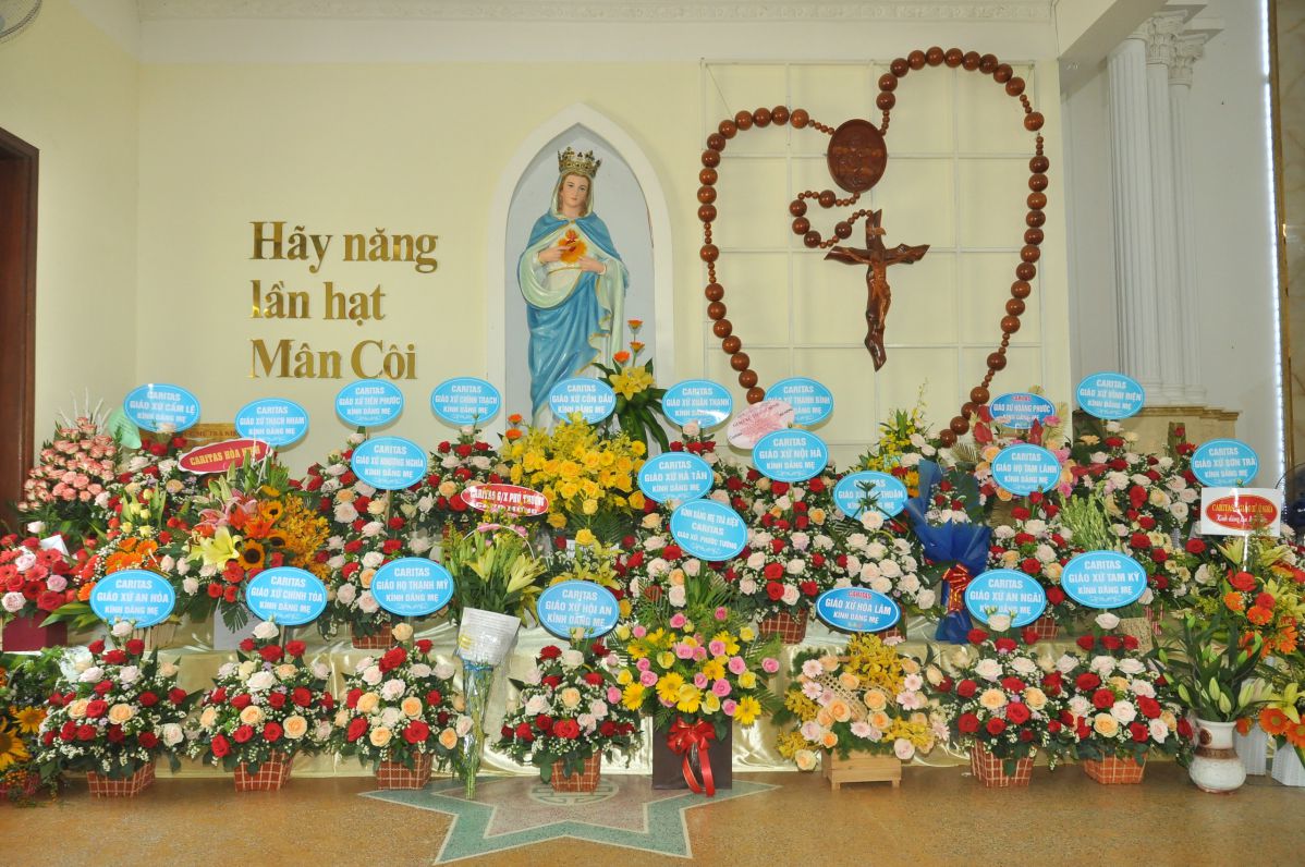 Sau khi ban phép lành cuối lễ, Cha giám đốc kêu gọi hội viên thể hiện lòng bác ái cụ thể bằng việc đóng góp để giúp phương tiện sinh kế cho 10 hộ nghèo khó nhất. Thánh lễ kết thúc với việc đại diện các Caritas giáo xứ dâng hoa và bó hoa thiêng liêng cho Đức Mẹ.