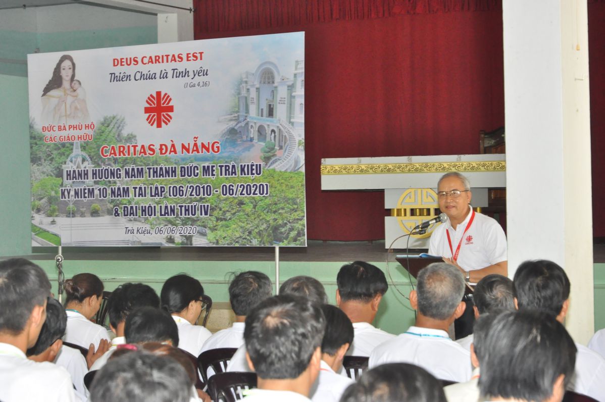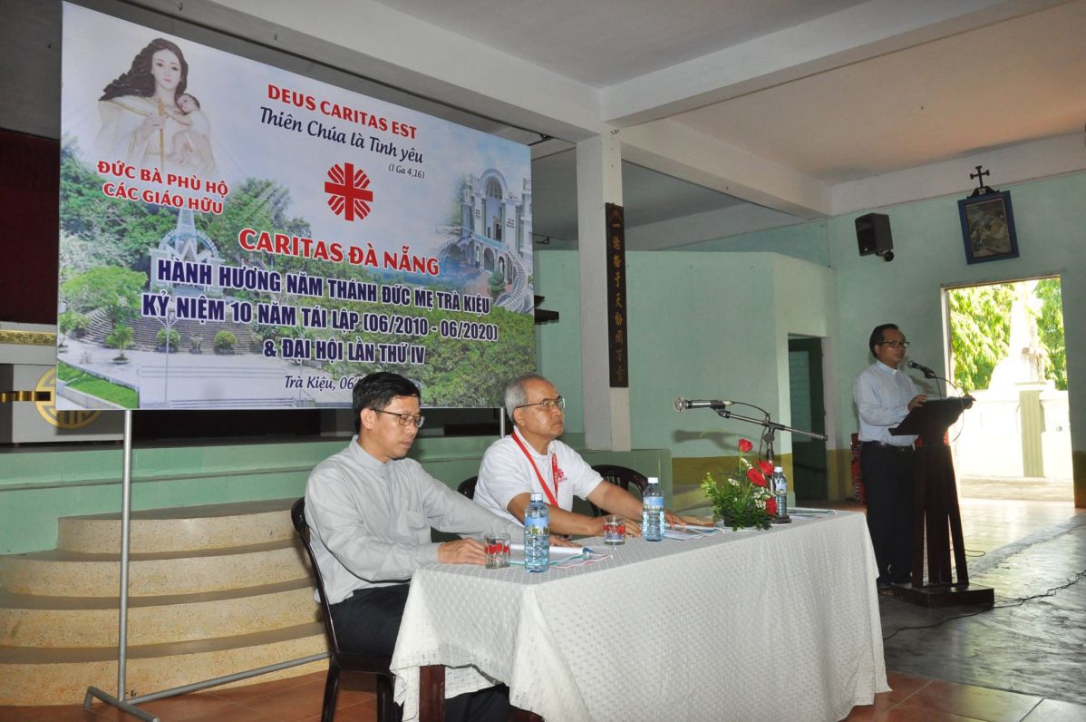Hôm đó, ngay từ sáng sớm, gần 300 hội viên từ 54 giáo xứ/giáo họ trong giáo phận đã về nơi linh địa, vừa hành hương vừa tạ ơn nhân kỷ niệm 10 năm tái lập Caritas Đà Nẵng (15/6/2010 – 15/6/2020). Đây cũng là ngày Đại hội Caritas lần thứ 4 theo định kỳ hai năm một lần. Cùng tham dự có cha giám đốc Marcello Đoàn Minh, cha phó giám đốc Simon Nguyễn Can Trường, các nhân viên văn phòng, nhóm các tình nguyện viên trẻ và thành viên các ban chuyên trách. Mỗi tham dự viên được trao phù hiệu, tập “Tài Liệu” và tập “Cẩm nang Caritas Đà Nẵng”. Tập “Tài Liệu” có các bài viết về biến cố Đức Mẹ Trà Kiệu, báo cáo 10 năm Caritas Đà Nẵng, các bài chia sẻ về công tác Caritas, chương trình ngày hội; cuốn “Cẩm Nang” có nội dung: linh đạo, nội qui Caritas Việt Nam, thư tái lập Caritas Đà Nẵng, các địa chỉ, danh bạ Caritas Đà Nẵng, các mẫu đơn, giấy tờ, hướng dẫn kế toán của Caritas Đà Nẵng.