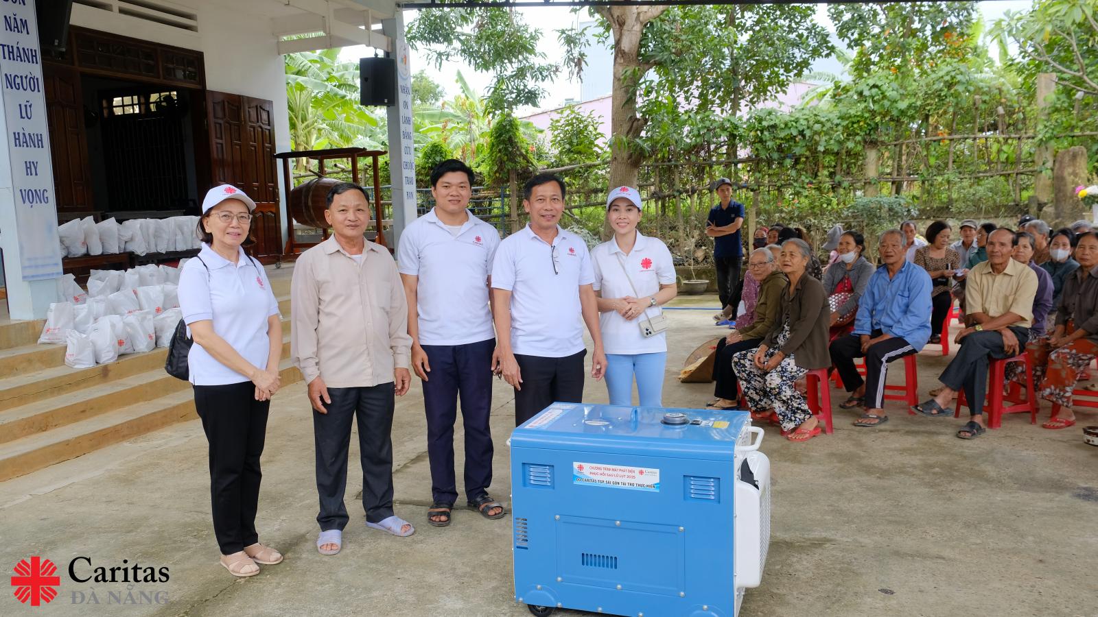 Nhờ sự nâng đỡ của Caritas Tổng Giáo phận Sài Gòn, Caritas Đà Nẵng đã trao tặng 9 máy phát điện cho nhiều giáo xứ và giáo họ: Khánh Thọ, Tiên Phước, Ô Gia, Thạnh Mỹ, An Trường, Gò Nổi (Giáo xứ Phước Kiều), Tam Hải (Giáo xứ Tam Kỳ), Hà Thanh (Giáo xứ Lệ Sơn), Trung Mang (Giáo xứ Đông Vinh). Đồng thời, Caritas cũng chuẩn bị các thiết bị lọc nước mini dùng năng lượng mặt trời – có thể sạc điện thoại – để hỗ trợ các gia đình đang thiếu nước sạch và thường xuyên mất điện.