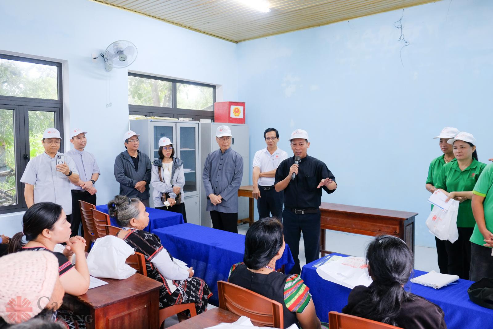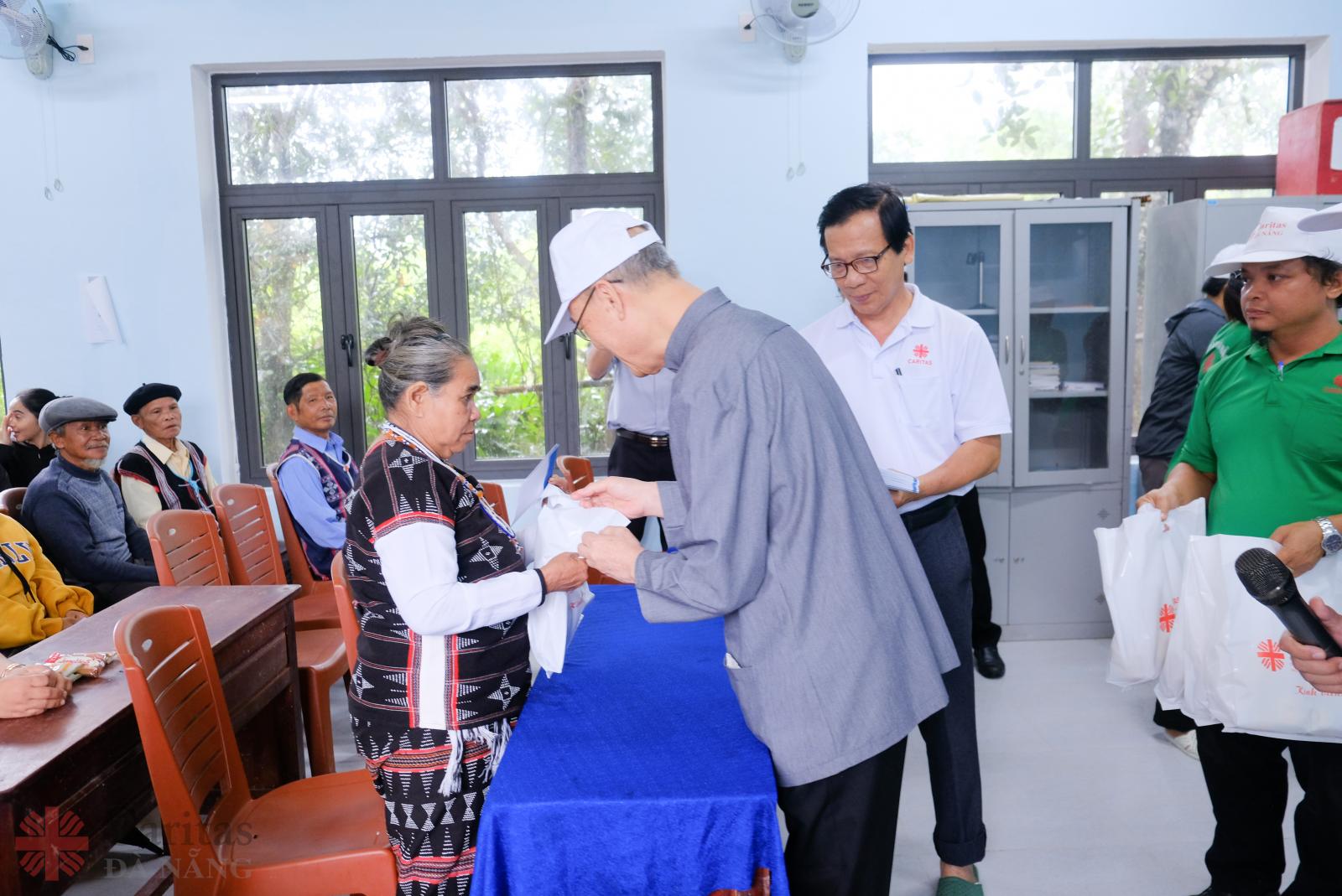 Nhờ sự sắp xếp của Cha Antôn Trần Văn Quốc (CRM) đang phụ trách Giáo họ Trung Mang và vị trưởng thôn, những người được đề xuất hỗ trợ đã tụ họp đông đủ với y phục truyền thống người Cơ-tu để đón phái đoàn. Người dân nơi đây vốn chất phác, vất vả mưu sinh bằng trồng trọt, chăn nuôi, vì thế mà khó tránh khỏi những thiệt hại do thiên tai lũ lụt, họ vốn đã nghèo lại thêm bi đát hơn.