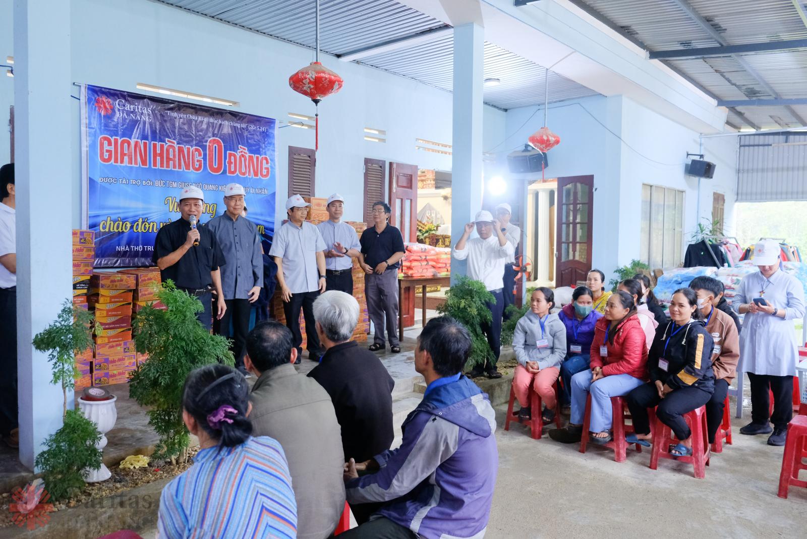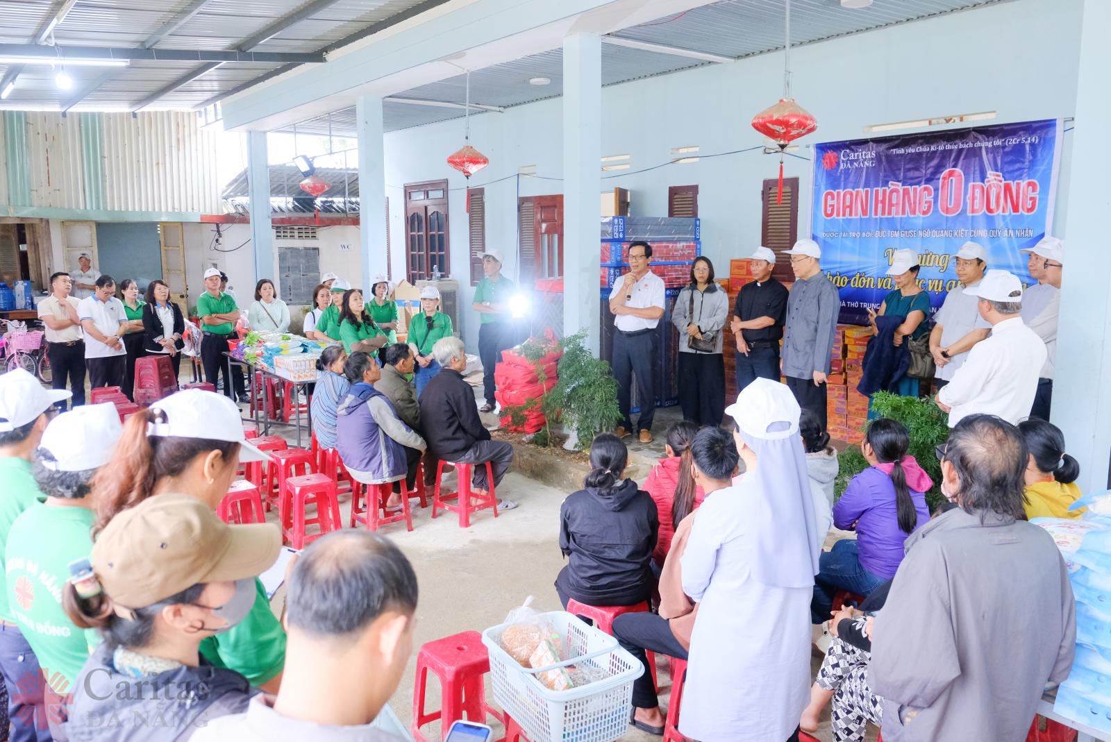 Đức Tổng Giuse bày tỏ niềm vui và sự bất ngờ trước cách chia sẻ quà bằng hình thức siêu thị 0 đồng của Caritas Đà Nẵng: vừa ý nghĩa, vừa nhân văn, vì những người được chọn tham gia siêu thị có quyền chọn những mặt hàng mình ưa thích. Trong lời chia sẻ khai mạc, ngài nói cách hóm hỉnh: “Chúng tôi chỉ là những người ship hàng. Chúng tôi là những người anh chị em của anh chị em – con cùng một Cha. Có những anh chị em khác ở xa nghe tin về lũ lụt nên gửi quà đến với anh chị em nơi đây. Chúng tôi chỉ chuyển giúp mà thôi. Ước mong anh chị em hiểu được tình yêu thương của Cha, tình yêu thương của anh chị em một nhà và cảm nhận được tình yêu thương của Cha qua những món quà này”.