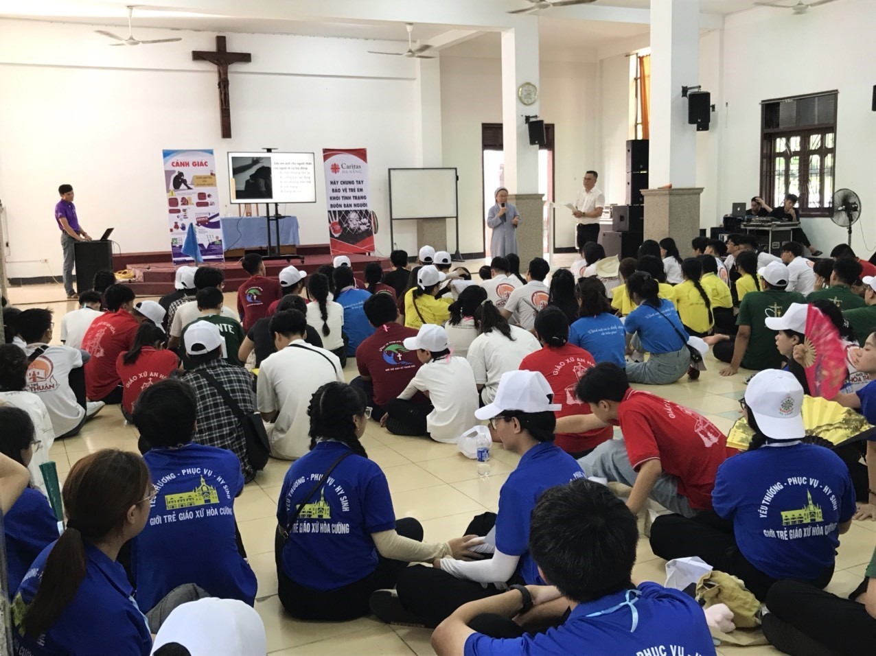 Ngày 21/7/2024 Ban truyền thông Di cư an toàn và Phòng ngừa mua bán người – Caritas Đà Nẵng tổ chức buổi truyền thông cho gần 200 giới trẻ Hạt Đà Nẵng, Tại Trung Tâm Mục Vụ Giáo phận Đà Nẵng nhằm nâng cao hiểu biết về những thực trạng, nguyên nhân, hậu quả của việc mua bán người và di cư không an toàn, giúp các em hiểu rõ hơn những điều cần và nên tránh khi có ý muốn ra nước ngoài để học tập, làm việc, sinh sống hoặc kết hôn một cách tốt nhất để không biến bản thân mình thành nạn nhân của những kẻ buôn bán người.