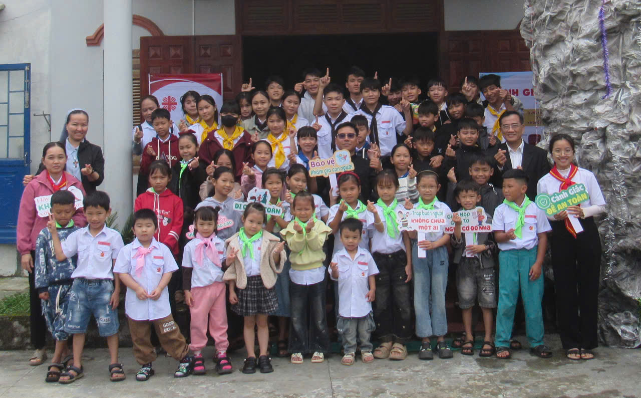 Nhằm nâng cao hiểu biết về những thủ đoạn lừa đảo của tội phạm buôn người, đồng thời cách phòng chống nạn buôn bán người cho thanh thiếu niên, Sáng Chúa nhật, ngày 4.1.2026, tại nhà nguyện giáo họ biệt lập Thái Đông – Giáo phận Đà Nẵng. Quý Sơ và tình nguyện viên là chuyên viên Ban “Di Cư An Toàn và Phòng Chống Buôn Người” của Caritas Đà Nẵng, đã có buổi truyền thông hướng dẫn cho khoảng 80 thiếu nhi và Huynh trưởng của giáo họ biệt lập Thái Đông về vấn đề này.