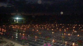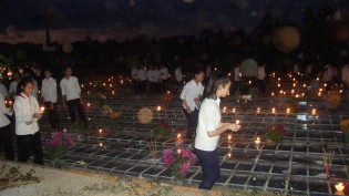 Chúng tôi cùng nhau cắm hoa, thắp hương và thắp nến tại các ngôi mộ trước khi bắt đầu buổi cầu nguyện.Buổi cầu nguyện tuy đơn sơ, ngắn gọn trong vòng 20 phút, nhưng ấm cúng và linh thiêng. Các thanh thiếu niên dưới sự hướng dẫn của các thầy,các sơ trong bộ đồng phục áo trắng học sinh đứng nghiêm trang và sốt sắng trong buổi cầu nguyện.