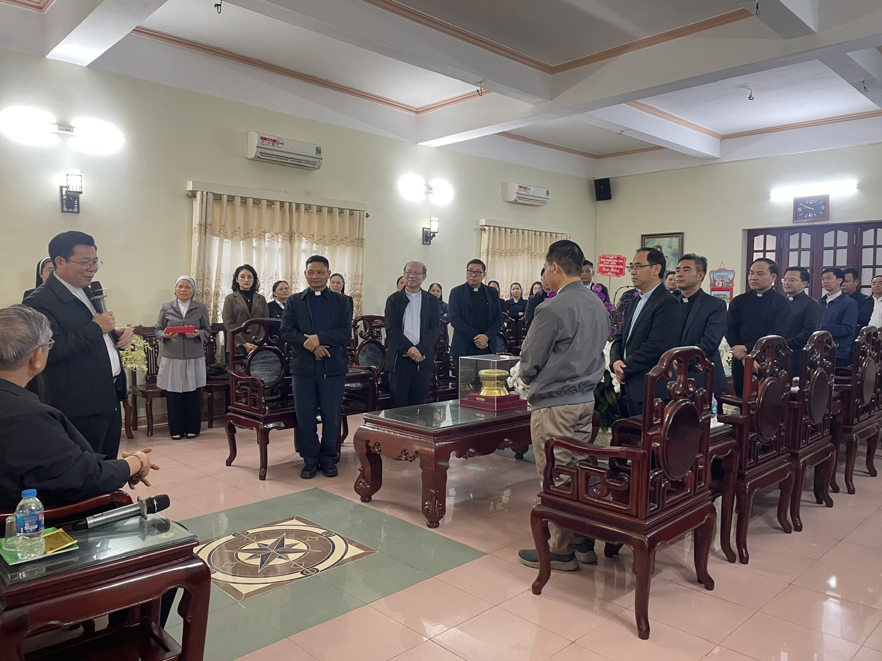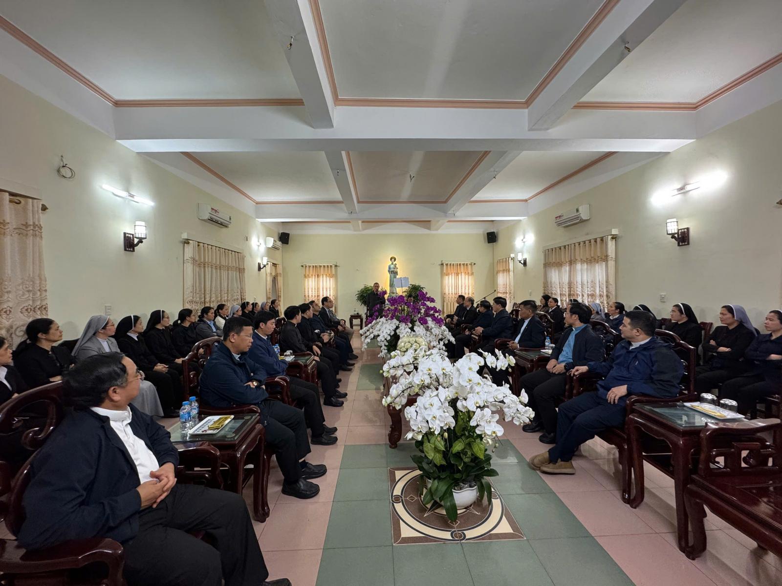 Buổi gặp mặt vào lúc 9h30 ngày 12.03.2026 tại Giáo phận Bùi Chu có sự hiện diện đầy đủ của Cha Giám đốc, Cha Phó Giám đốc, quý Sơ và toàn thể nhân viên văn phòng Caritas của 11 Giáo phận thuộc Giáo tỉnh Hà Nội. Trong sự đón tiếp nồng hậu của Đức Cha Chủ tịch, Cha Gioan B. Vũ Văn Kiện đại diện Caritas Giáo tỉnh Hà Nội đã đại diện gia đình Caritas dâng lên Ngài những lời chúc tốt đẹp nhất.
