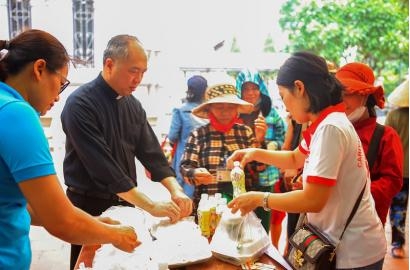 Ngoài ra tại nhà thờ giáo xứ Hà Đông, 30 xuất ăn đã được chia sẻ cho những anh chị em lao động có hoàn cảnh khó khăn ở xung quanh. Mỗi xuất ăn được bán với giá tượng trưng 5.000đ/1 xuất, để nhằm phục vụ cho chương trình “Bữa cơm tình thương” một cách lâu dài. Tuy nhiên, những bữa ăn này cũng được phân phát với giá 0 đồng cho những anh chị em không có khả năng chi trả.