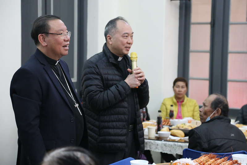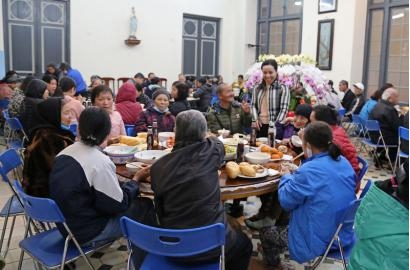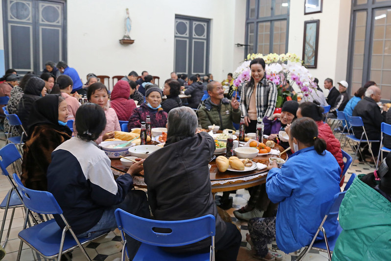 Không khí ấm cúng được lan tỏa khắp phòng ăn của Tòa Tổng Giám Mục, khi mọi người được cùng trò chuyện gần gũi với Đức TGM Giuse và quý Cha, được ngồi cùng bàn ăn với nhau để chia sẻ những câu chuyện vui buồn mà thật hiếm khi họ có được. Hơn nữa, hôm nay ai cũng cảm thấy thật hạnh phúc khi được dự một bữa cơm thân mật với sự tận tâm phục vụ của quý Sơ và các anh chị em hội viên Caritas. Sau bữa cơm, niềm vui ấy đã được nhân đôi khi Đức TGM Giuse và quý Cha trao tặng những phong bao lì xì và gửi lời chúc Xuân đến từng người.