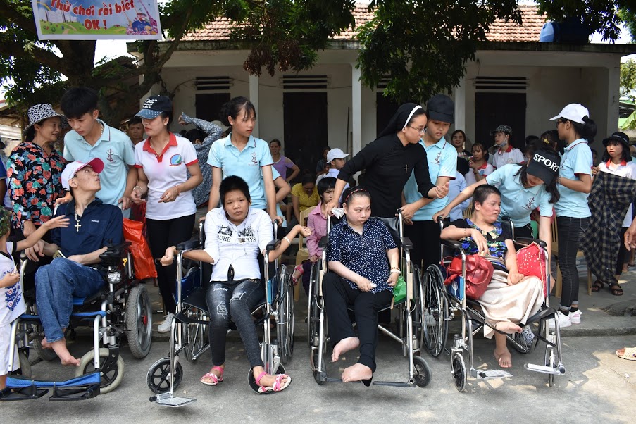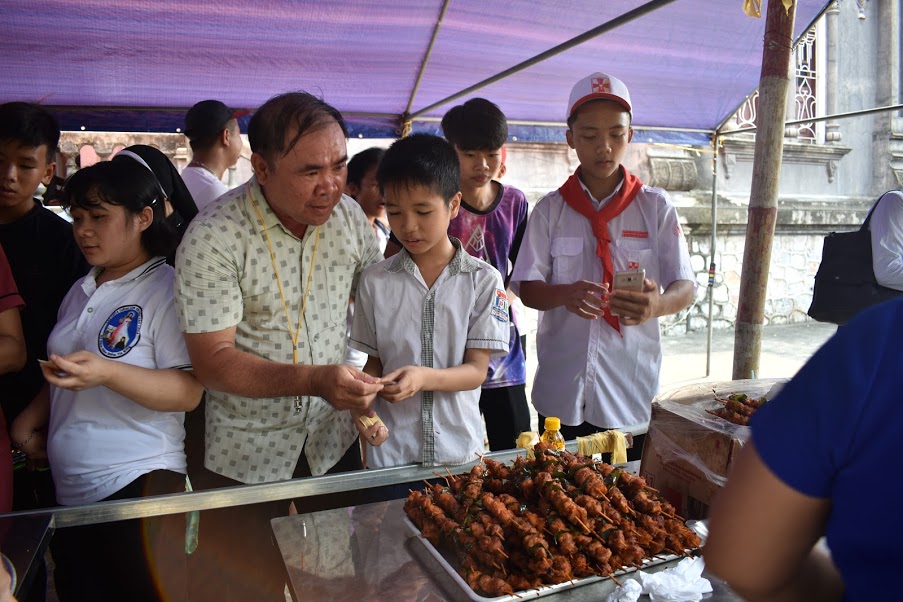 Ngay từ sáng sớm, các em thiếu nhi trong xứ đã cùng nhau cắm trại với màu sắc rực rỡ và hoa tươi để chờ đón các bạn có hoàn cảnh đặc biệt từ một số giáo xứ khác trong Tổng Giáo Phận quy tụ về. Đây là lần đầu tiên các em thiếu nhi trong giáo xứ được cùng chia sẻ, cùng dùng cơm và cùng vui chơi với thật đông các bạn khuyết tật.