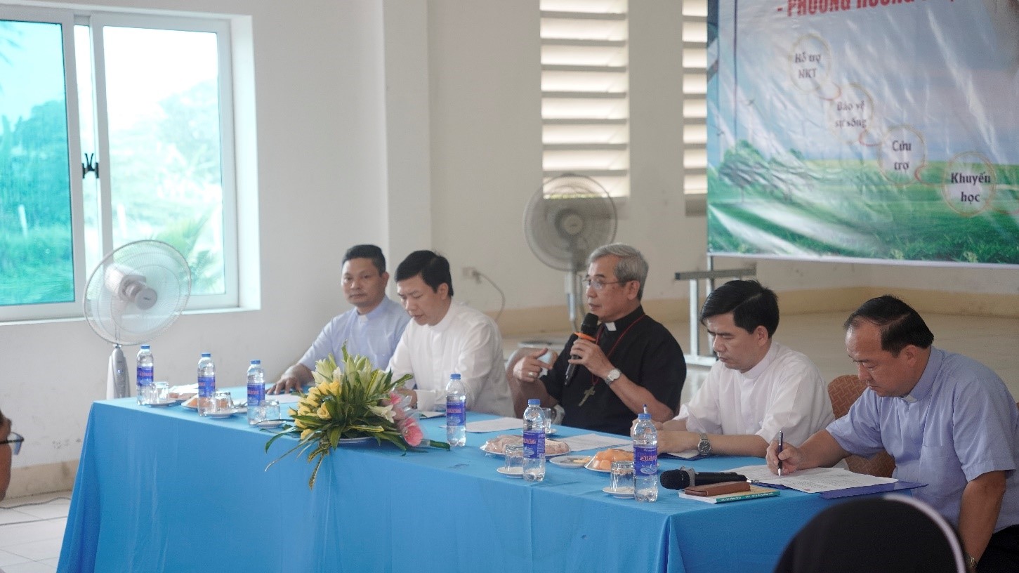 Sau khi lắng nghe ý kiến đóng góp cùng những thao thức của quý cha và quý tham dự viên, Đức Cha Louis nhắn nhủ toàn hội nghị hai điều. “Thứ nhất cần quan tâm giáo dục toàn diện cả về tâm-sinh lý, luân lý, tín lý… cho thế hệ trẻ, giúp họ hiểu được giá trị của sự sống, trang bị những kiến thức cần thiết để có thể đứng vững và khẳng định được giá trị căn bản của con người giữa một xã hội tục hóa, đầy dẫy những cám dỗ và thử thách. Thứ hai ngài nhấn mạnh cùng đích của hoạt động Caritas chính là truyền giáo. Từ những cử chỉ bác ái trong gia đình, lối xóm, cộng đồng sẽ gây một tiếng vang lớn đánh động những người xung quanh. Đây là hoạt động mang tính hoàn vũ, nên đòi hỏi cần có sự cộng tác hữu hiệu giữa các tổ chức đoàn thể khác nhau trong Giáo hội địa phương. Và điều này thể hiện được tính chất Hiệp Hành của Giáo hội, là bước đi cùng nhau và với nhau”.
