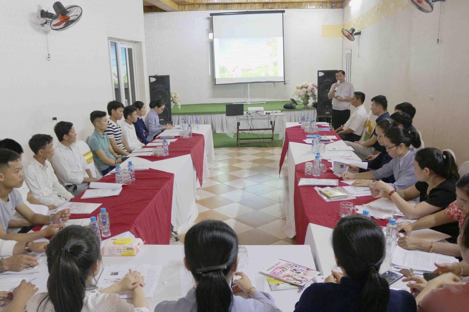Tham gia khóa tập huấn có sự hiện diện của Cha Đặc trách Tiểu ban Hỗ trợ NCH, Sơ chuyên trách, quý Sơ văn phòng và gần 20 anh chị em cộng tác viên, tình nguyện viên tại các Giáo xứ, Giáo hạt trên địa bàn Giáo phận dưới sự dẫn dắt, chia sẻ của BSCKI. Nguyễn Văn Hướng và Lm. JB. Nguyễn Huy Tuấn, Giám đốc Caritas Hà Tĩnh.