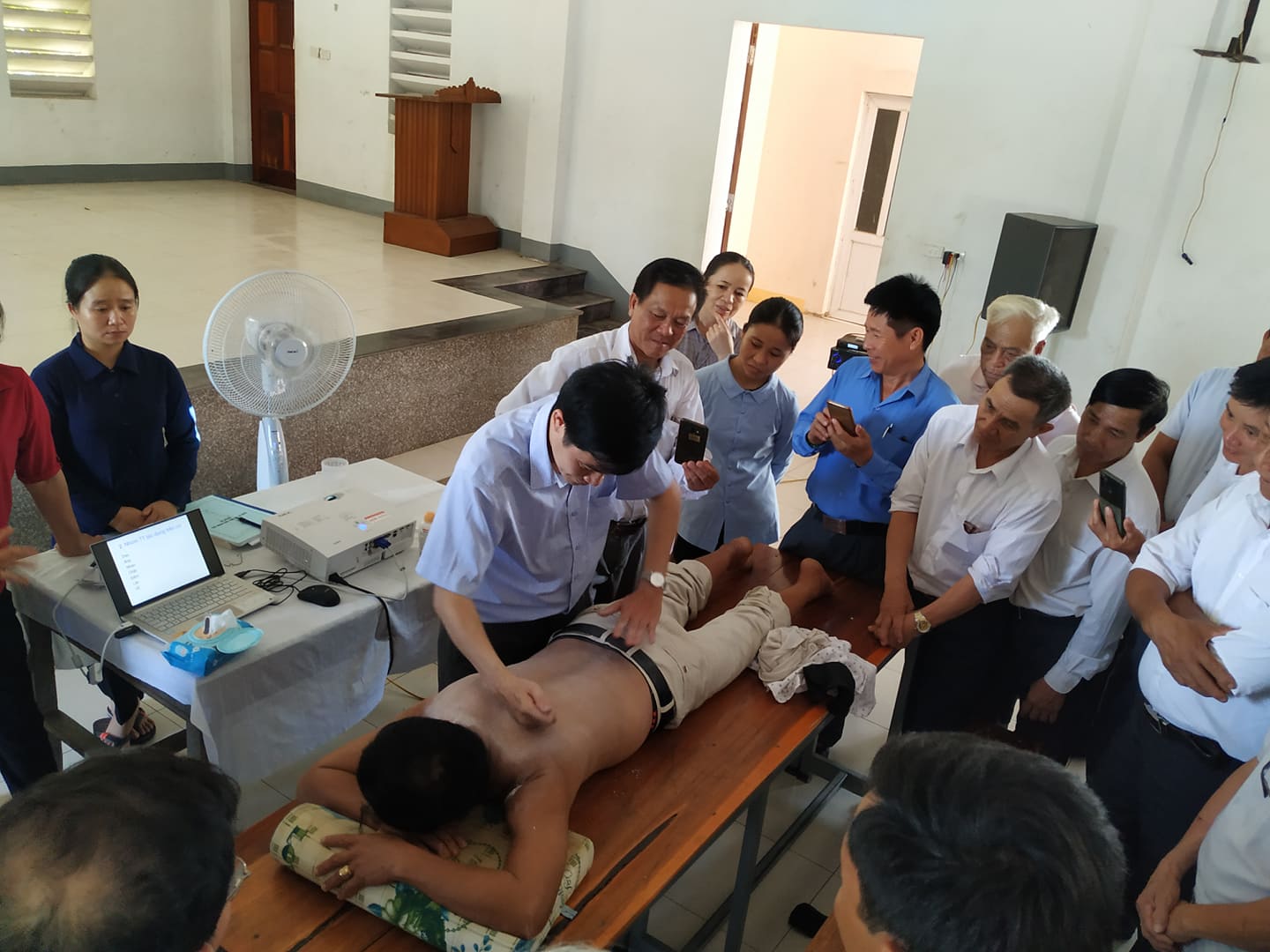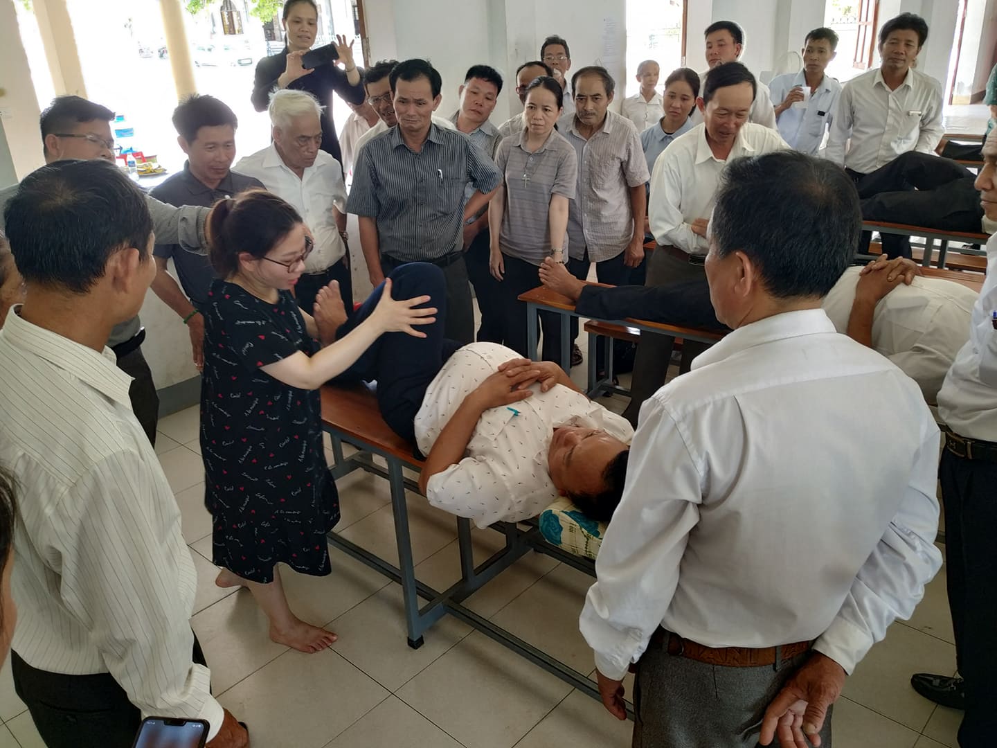 Không chỉ dừng lại ở lý thuyết, hai ngày tiếp theo, Ths. Phan Thanh Hy và CN. Nguyễn Thiên Phú trực tiếp hướng dẫn các bài tập hỗ trợ, chăm sóc Bệnh nhân TBMMN, trẻ bại não; thủ thuật xoa bóp, bấm huyệt cho bệnh nhân đau cơ, xương, khớp...Lòng nhiệt thành của các Bác sĩ như tiếp thêm lửa tin yêu trong sứ vụ yêu thương, đồng hành cùng NKT của các TDV.