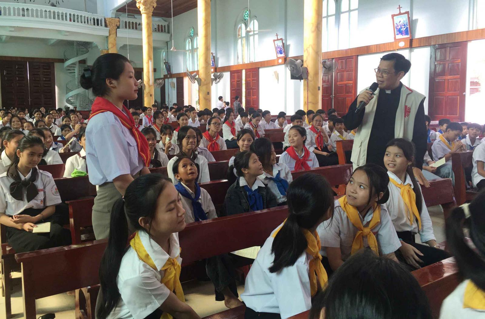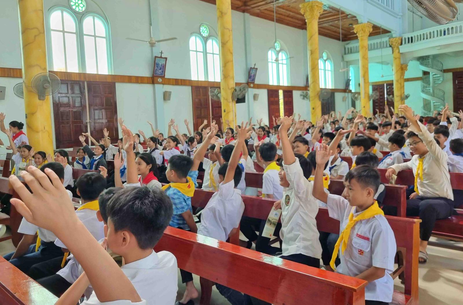 Các tham dự viên đều chăm chú lắng nghe những câu chuyện thực tế, những thông tin thiết thực. Cuối buổi thuyết trình, Cha đặc trách kiểm tra khả năng ghi nhớ thông tin, kiến thức qua những câu hỏi ngắn và các bạn đã tham gia trả lời cách hào hứng và chính xác.