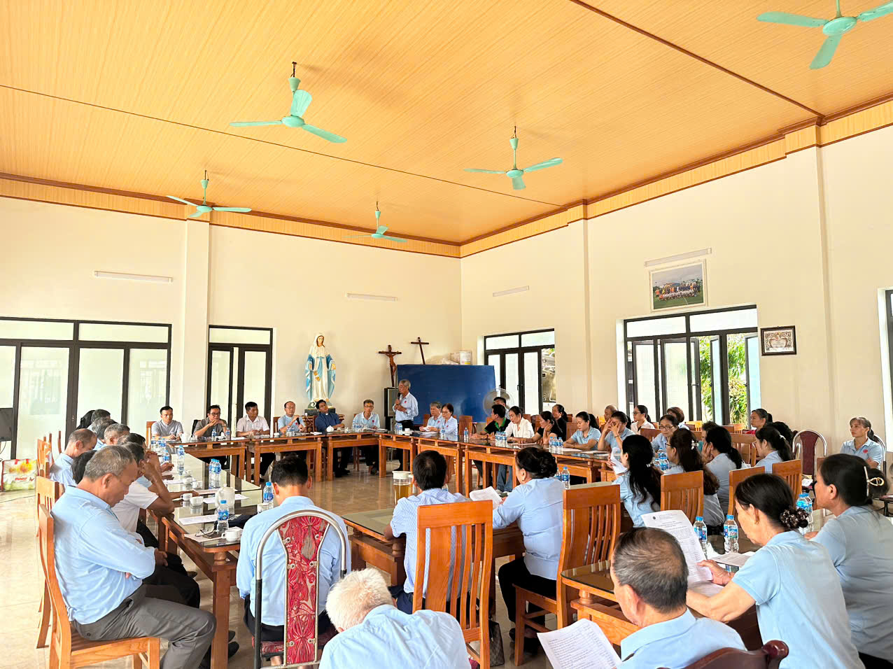 Sáng ngày 09 tháng 09, văn phòng Caritas giáo phận và Ban điều hành Caritas các giáo hạt đã nhóm họp tại giáo xứ Mỹ Động để nghe báo cáo trực tiếp tình hình thiệt hại và lên kế hoạch cứu trợ.