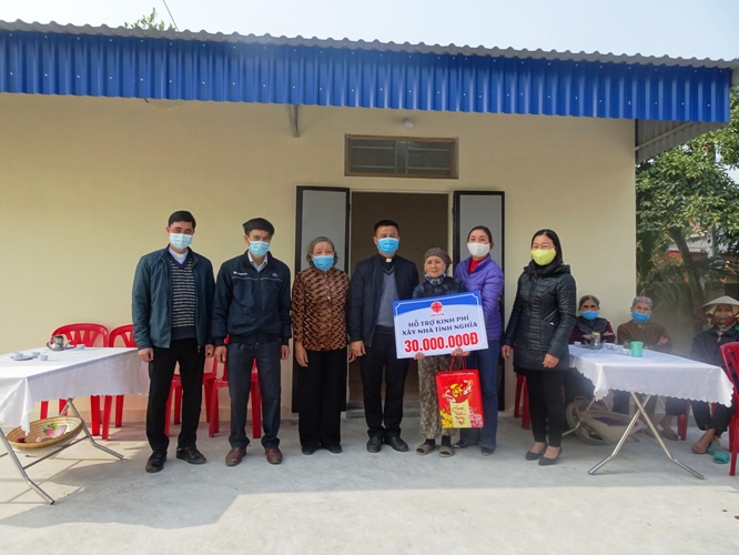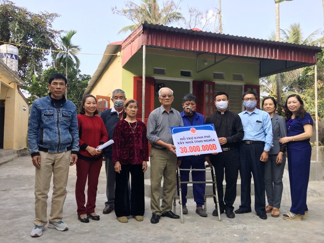 Trước đó, dịp cuối tháng 01/2021, cha Giám đốc, nhân viên Văn phòng cũng về tham dự buổi khánh thành và trao kinh phí hỗ trợ xây nhà tình nghĩa cho bà Phạm Thị Nhót (71 tuổi, neo đơn, bị thiểu năng trí tuệ) tại thôn Xuân Lai, xã Bạch Đằng, huyện Tiên Lãng, Hải Phòng.