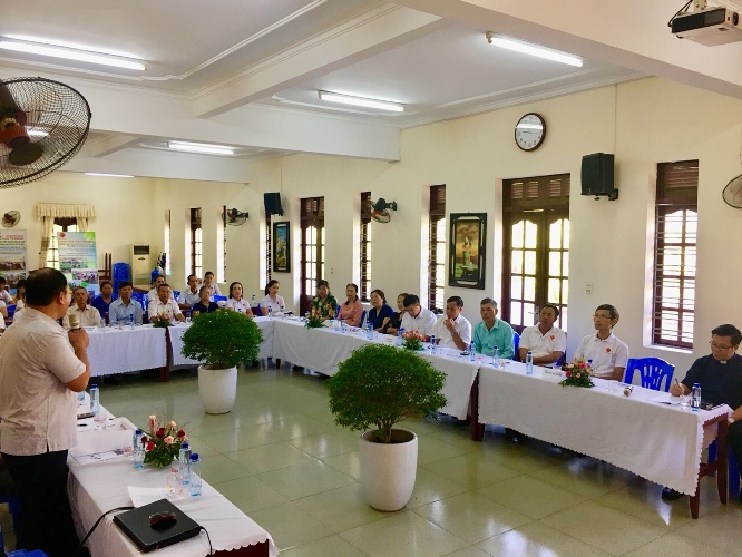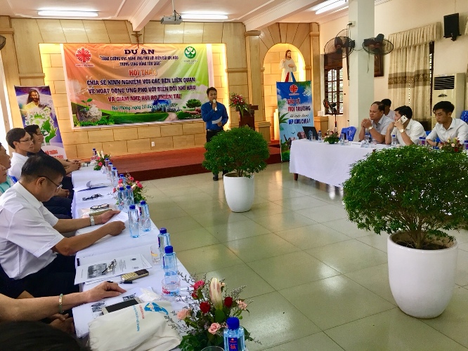 Chương trình hội thảo có sự hiện diện của Quý cha Ban Giám đốc, nhân viên văn phòng, tình nguyện viên, thành viên các đội ƯCKC Caritas Hải Phòng; cùng Ban lãnh đạo Hội chữ thập đỏ (CTĐ) thành phố, các đội phản ứng nhanh, ban BVMT các quận huyện. Tất cả đều chung mục đích tìm ra giải pháp tối ưu trong việc nhân rộng các mô hình thích ứng với BĐKH và BVMT tại cộng đồng.