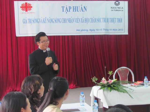 Từ ngày 10 - 14/10/2013, tại hội trường Toà Giám mục Hải Phòng, đã diễn ra khoá tập huấn“giá trị sống và kỹ năng sống cho nhân viên công tác xã hội làm việc với trẻ em bị thiệt thòi”. Lớp học được Tiến sỹ Đỗ Ngọc Khanh - Giám đốc Trung tâm Tâm lý Lâm sàng - Viện tâm lý - Viện Khoa học xã hội Việt Nam giảng dạy cho 25 thành viên đến từ Tổ chức Change, Nhóm hoa trinh nữ, Tự Lực Đồ Sơn, Nắng Mai, Vòng Tay Bè Bạn, Hoa Hải Đường, Khát Vọng Sống, Sống Tích Cực, Trường Sơn Xanh Sinh viên Công giáo, Ve Chai Nhân Ái đang cùng với Caritas Hải Phòng làm công tác xã hội.