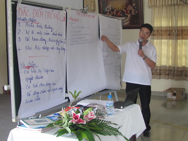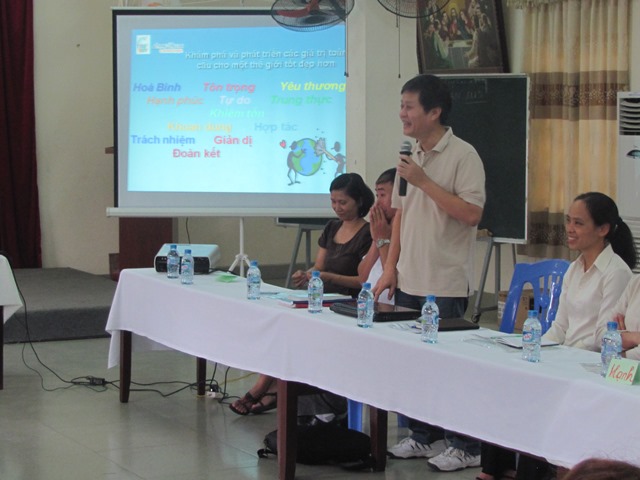 Trong khoá học giảng viên đã phân tích và hướng dẫn rất kỹ 12 giá trị sống “ Hoà bình, tôn trọng, hợp tác, đoàn kết, trách nhiệm, khoan dung, khiêm tốn, giảm dị, trung thực, yêu thương, tự do, hạnh phúc”. Ngoài ra học viện còn được hướng dẫn soạn giáo áo theo từng chủ đề của giá trị sống và thực hành đứng lớp giảng dạy cho các đối tượng trẻ “ trẻ mồ côi, đường phố, trẻ khuyết tật, trẻ nhiễm và ảnh hưởng bởi HIV/AIDS…”mà các nhóm đang hỗ trợ. Lớp học trở lên sôi động và hấp dẫn với sự năng động, sáng tạo của từng học viên trong các tiết thực hành đứng lớp.
