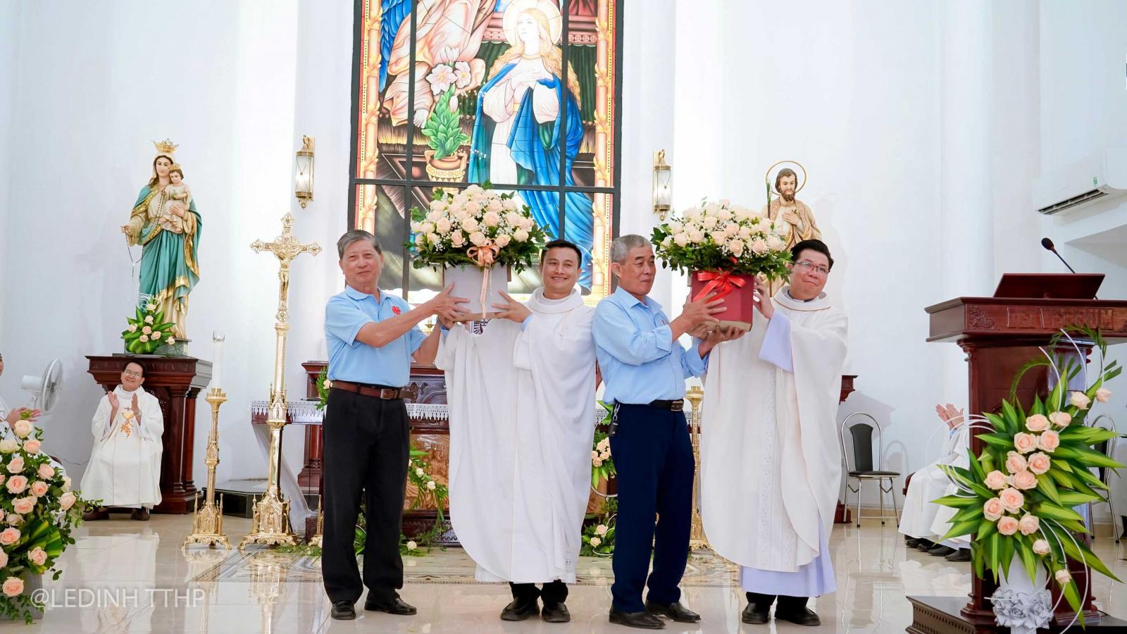 Trước khi kết thúc thánh lễ, thay lời cho Quí cha đặc trách và các hội viên, cha tân Giám đốc đã có tâm tình chúc mừng bổn mạng và tri ân Đức cha, cám ơn Quí cha Giám đốc tiền nhiệm, cám ơn Quí ân nhân. Tâm tình đó được diễn tả cụ thể qua những lẵng hoa tươi dâng lên Đức cha và Quí cha, trong những tràng pháo tay nồng nhiệt của các hội viên.