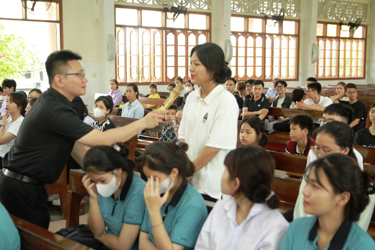 Sau phần chia sẻ của thày Giuse, các tham dự viên cùng đến với một nội dung cũng đầy hào hứng, đó là các bài hát sinh hoạt và các câu hỏi đố vui dưới hình thức “đuổi hình bắt chữ”. Các em đã sôi nổi giơ tay xin giải đáp các câu hỏi và được nhận những phần quà nhỏ rất ý nghĩa. Thông qua phần vui chơi, thày quản trò cũng cắt nghĩa thêm về các đáp án, để truyền đến các em những giá trị sống mang tính nhân văn, như: đồng cảm, chân thành, quan tâm, yêu thương…