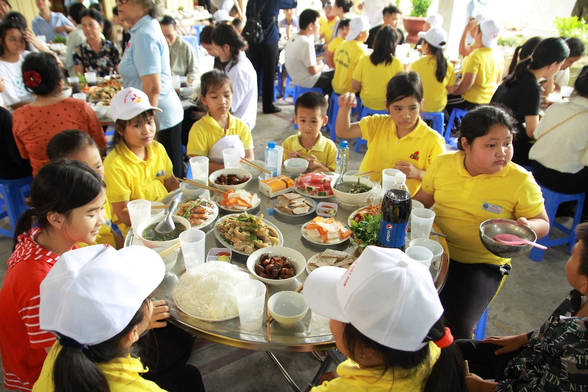 Cuối ngày giao lưu, các em cùng gặp gỡ với cha Giám đốc Phêrô Sanen Nguyễn Văn Hiệu, rồi sau đó cùng mọi người chung chia bữa cơm thân mật.