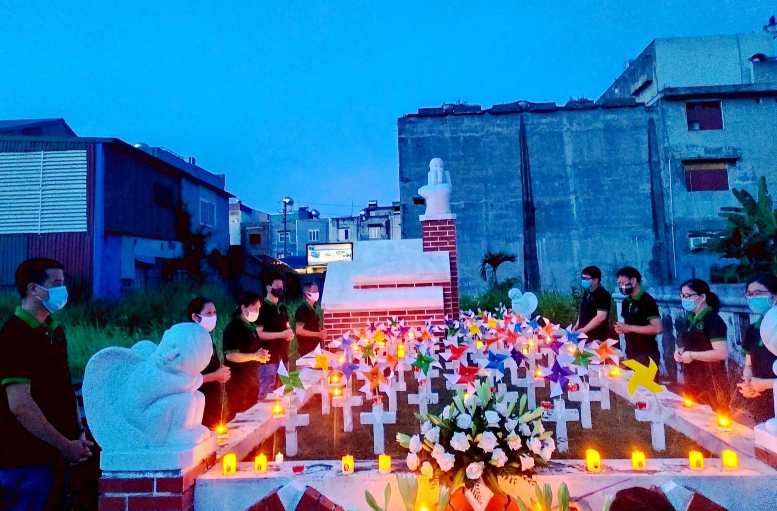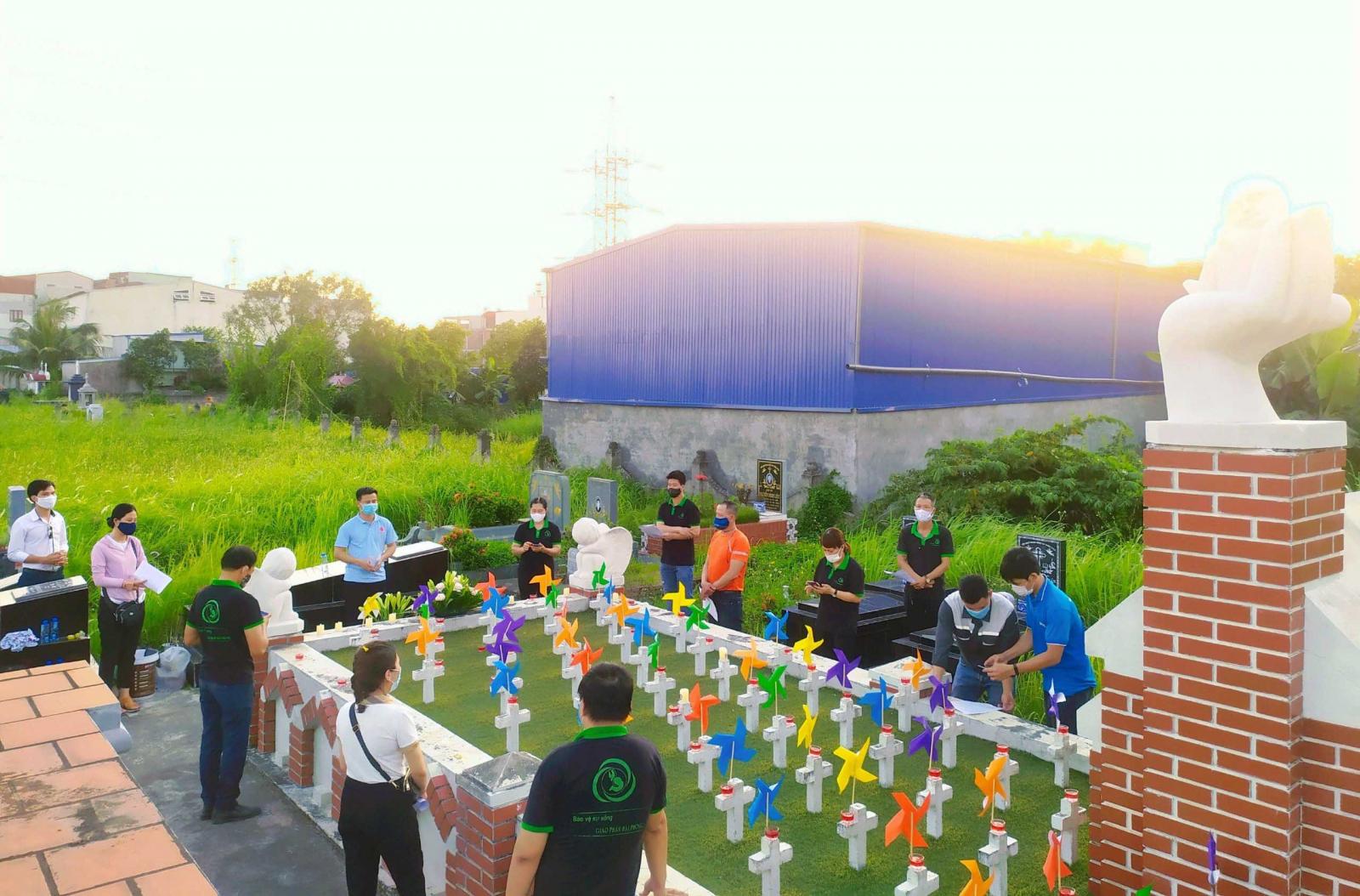 Cuối ngày, anh chị em Văn phòng Caritas đã tham dự giờ cầu nguyện cùng với các thiện nguyện viên Bảo vệ sự sống tại nghĩa trang Giáo xứ Trang Quan - Đồng Giới, nơi có hầm mộ an táng gần 70.000 thai thi trong hơn mười năm qua.