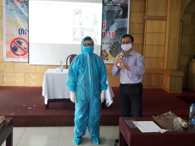 Sau khi giải lao, các hội viên tiếp tục được nghe bác sĩ trình bày các cơ chế lây nhiễm và kỹ năng để phòng tránh lây nhiễm dịch bệnh. Theo đó, mọi người cần phải khử trùng nơi ở, nơi làm việc; đeo khẩu trang để bảo vệ chính mình và người xung quanh. Nếu nhận thấy có dấu hiệu bị nhiễm virus này, cần khai báo và tự nguyện đến nơi cách ly tập trung của ngành y tế. Cuối cùng, để có thể tham gia cứu trợ khi được huy động, ngoài việc xây dựng kế hoạch cứu trợ, chuẩn bị nhân lực, chuẩn bị trang thiết bị, chuẩn bị những đồ cứu trợ… như các chuyến cứu trợ thông thường, các học viên cũng được hướng dẫn về cách xử trí và phối hợp với cơ quan y tế khi phát hiện có người nghi ngờ nhiễm Covid-19, cách sử dụng trang phục phòng hộ cá nhân, cách tiếp cận...