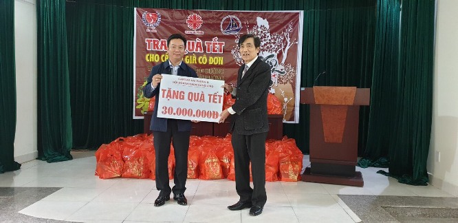 Ngày 23 tháng Chạp vừa qua, Caritas Hải Phòng và Hội DNCG đã đến thăm Trung tâm nuôi dưỡng bảo trợ xã hội Hải Phòng và chia sẻ với các cụ nơi đây những món quà Tết. Dù những ngày cuối năm biết bao bận rộn, các thành viên doanh nhân công giáo - những người quanh năm bôn ba nơi chốn thương trường - vẫn gác lại mọi công việc, để đồng hành cùng Caritas đến thăm và trao tặng những phần quà tới các cụ.