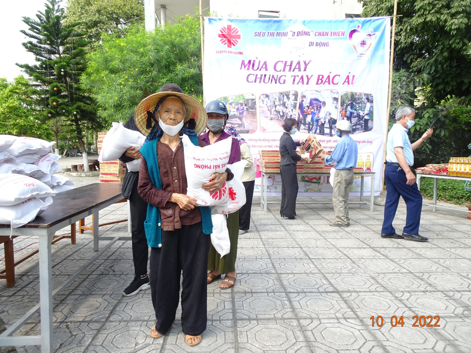 Chiến dịch “Mùa Chay chung tay bác ái” của Caritas Giáo phận Hải Phòng vẫn tiếp tục được đẩy mạnh hơn, khi mùa Chay đang dần tiến đến những ngày cao điểm. Hôm 10/4/2022, đúng ngày Chúa Nhật Lễ Lá - Khai mạc Tuần Thánh, những món quà yêu thương lại tiếp tục được trao gửi đến những anh chị em có hoàn cảnh khó khăn tại giáo xứ Cựu Viên, quận Kiến An, Hải Phòng.