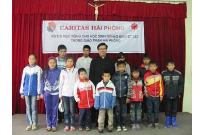 HẢI PHÒNG - Chúa nhật thứ tư Mùa Chay vừa qua, Caritas giáo phận Hải Phòng đã tổ chức trao học bổng cho 30 em học sinh nghèo khuyết tật mỗi suất trị giá 1.000.000 đồng. Đây là lần thứ ba Caritas Hải Phòng trao học bổng cho các em học sinh nghèo khuyết tật trong năm học 2011 – 2012.